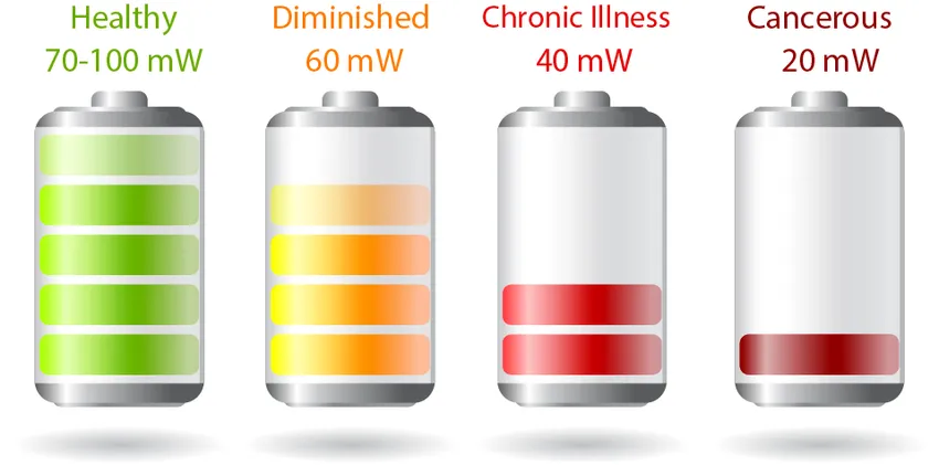 The body is made up of trillions of cells, all of which need energy to function. Energy is dynamic and has a frequency, which changes all the time. All the body’s energy is electromagnetic by nature and all cells produce their own electromagnetic fields.